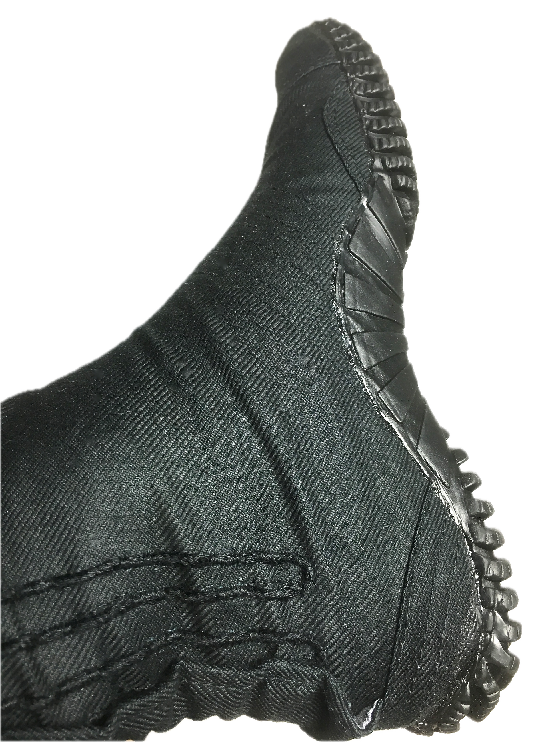 - Renforts par superposition de tissus et lignes de couture au niveau des orteils, des côtés et du talon