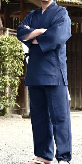 Ce samue haut de gamme est réalisé en coton japonais double épaisseur, offrant une excellente respirabilité, une grande résistance et un toucher souple. Sa teinte indigo traditionnelle lui confère une allure intemporelle, sobre et raffinée.